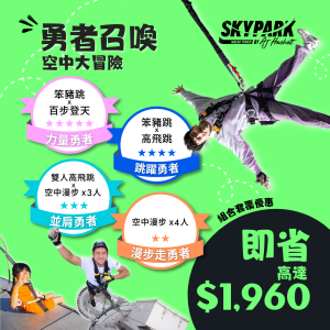 - 高飛跳 x 1跳 & 空中漫步 x 3人 : $3,688 (原價 $5,652)**